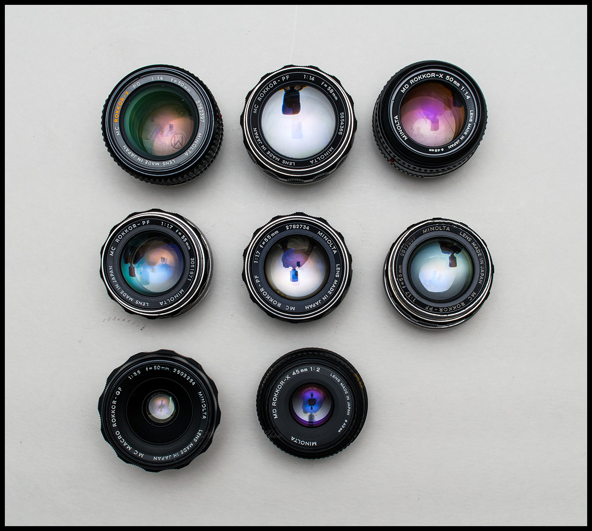 Last time I did a count on my f1.4 “standard” lenses, I found 13 (actually 14 as one eluded the tally). I had a day off last week, so I decided to do a more comprehensive inventory of all my lenses with focal length between 40mm and 58mm. The result astonished me. Before that, I estimated I had about 40 to 50 of them. I was way off, by a large margin. All the lenses, including the projection, enlarging, and lenses from rangefinder/folder cameras, totalled 123, or thereabouts; just between the focal length of 40-58mm.